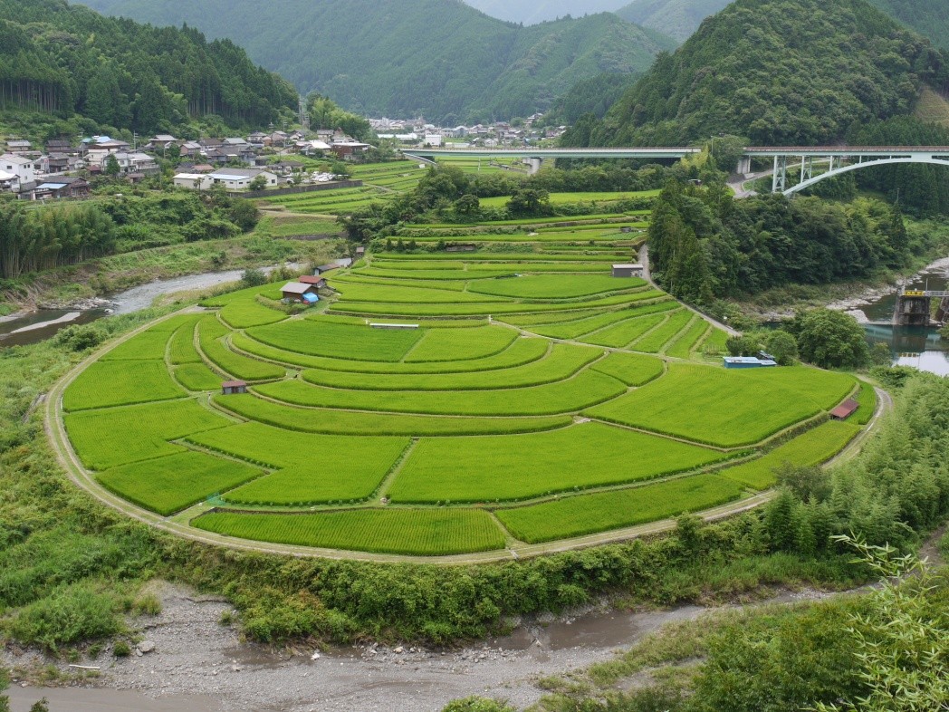 Japón desarrolla también cultivos en terrazas que llaman Tanadas, que usan con objetivos no solo de producción, lo hacen com fines turísticos como se muestra a continuación.