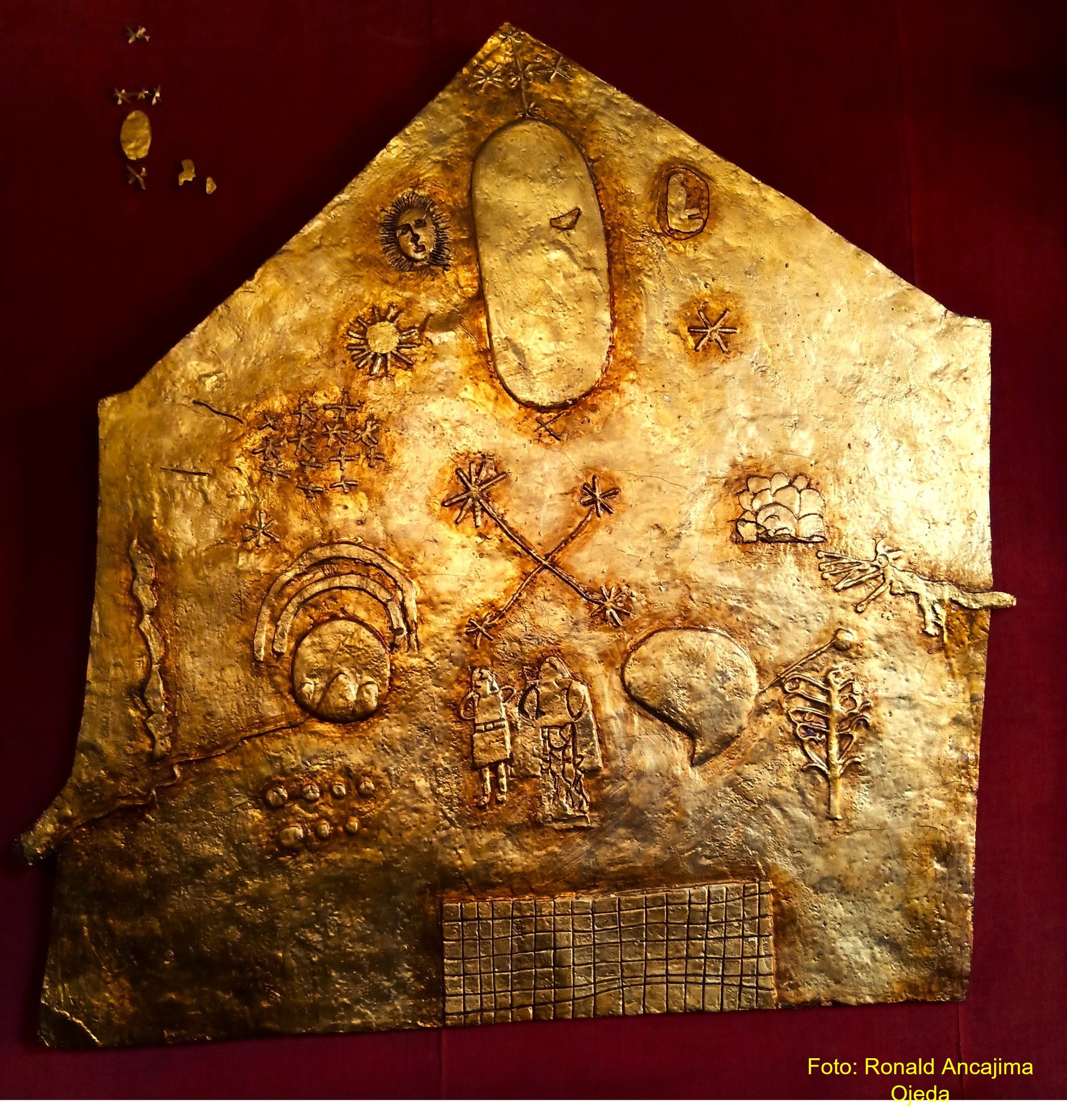 En el museo del Qoricancha (Cusco) se encuentra un grabado que nos muestra la visión de nuestros ancestros. A través de este grabado, podemos apreciar la cosmovisión andina desde su concepción superior de origen (Virakocha – Inti – Quilla) hasta el sustento de la vida que son los alimentos que se producen en el vasto sistema de andenes, representado en el reticulado ubicado en la parte inferior. ¡Una verdadera obra de arte que nos habla del pasado!