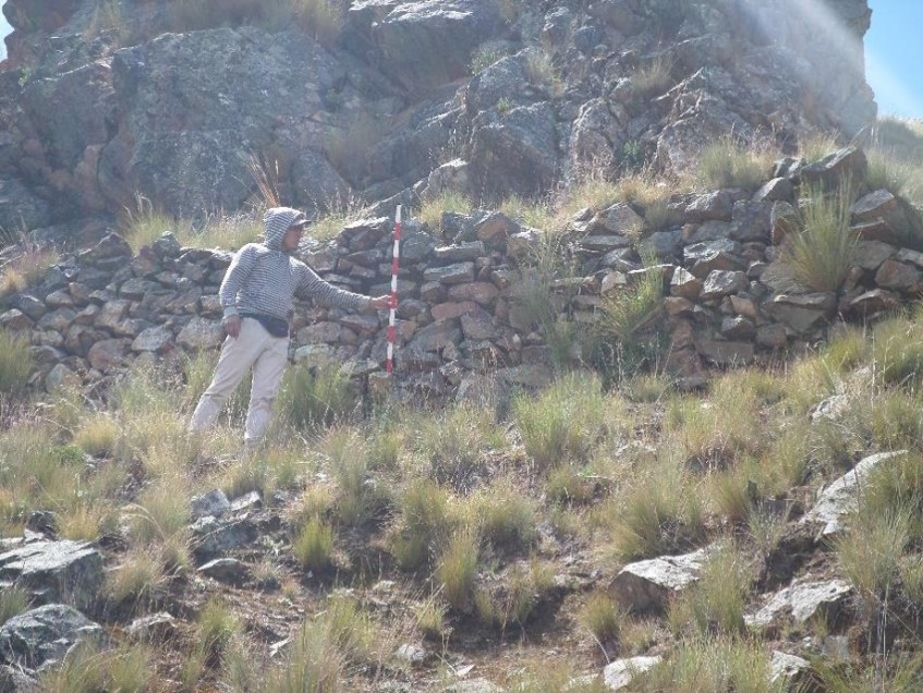 Primer terraplén registrado en la zona de acantilados. Vista en escala. El jalón mide