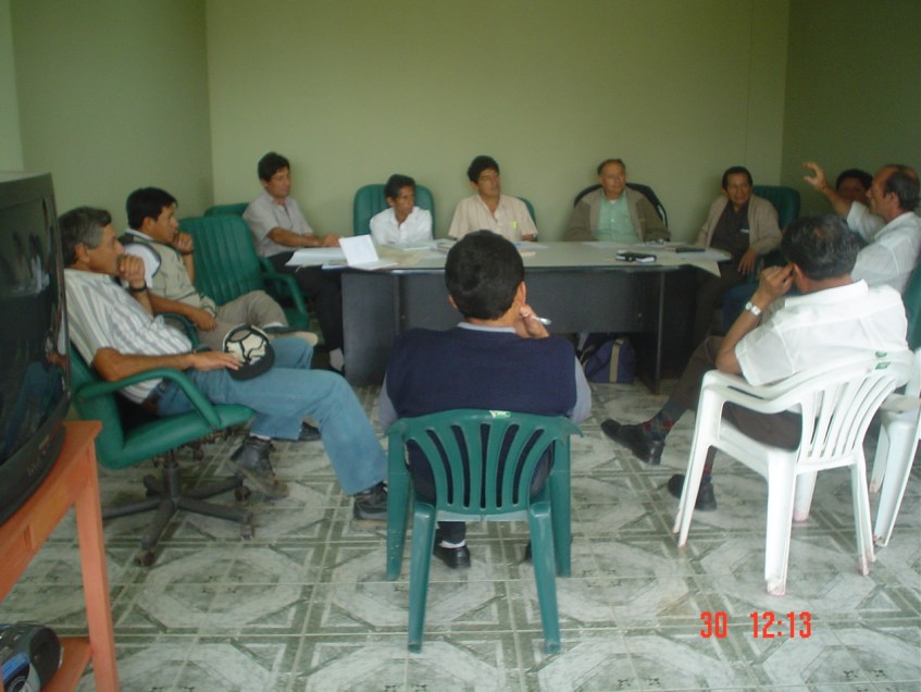 Reunidos en el local de la Junta de Usuarios de Nepeña, organizando el viaje a la parte alta de la cuenca.