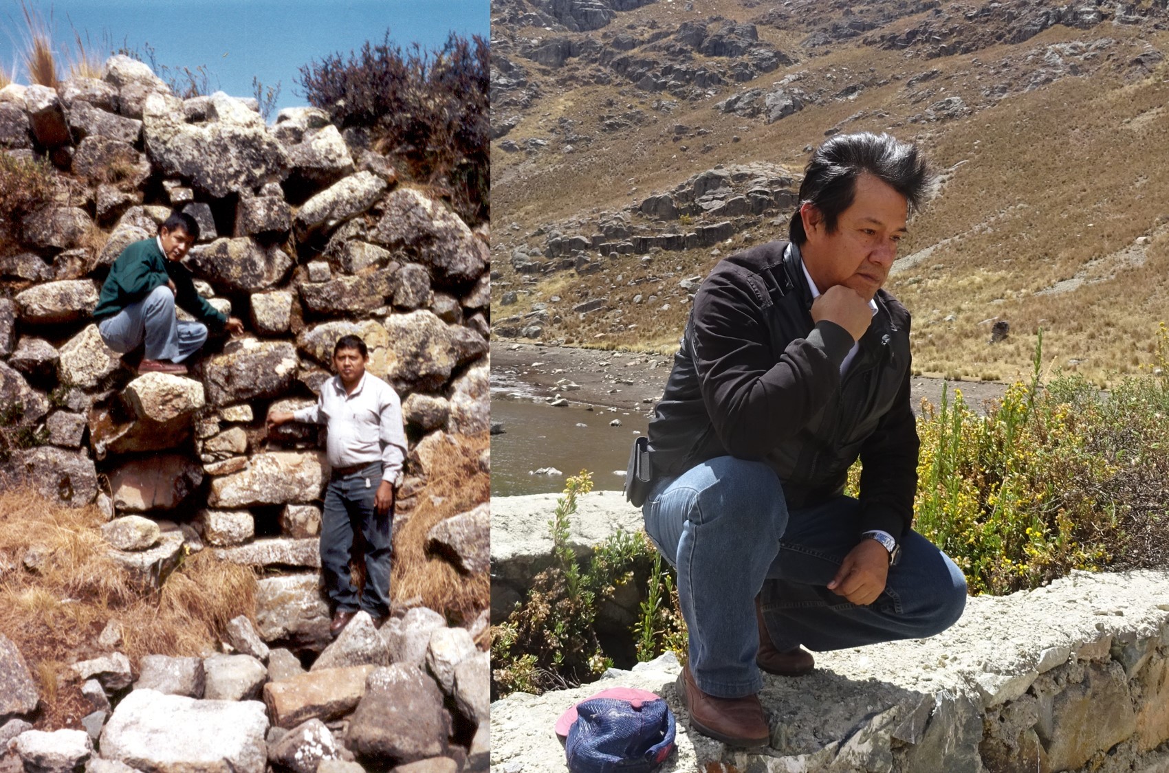 Imagen izquierda en el año 2003, el autor de la nota, Ronald Ancajima acompañado del Ing. Tobias Aguirre. En la imagen derecha la muestra de pesar por la destrucción de nuestra cultura