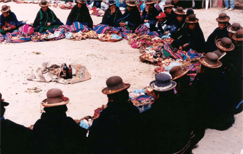 08 Las esposas de los Tenientes Gobernadores de las parcialidades de Tilali – pinu, traen sus kumanas (atados rituales) donde se encuentran envueltas en una istalla (manta) la diversidad de papas, ocas, quinuas, maíces.