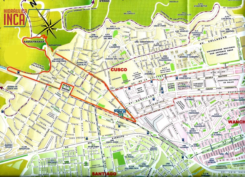 Delimitación de la forma del puma, del Cusco antiguo, en un plano actual