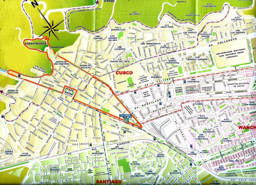 Delimitación de la forma del puma, del Cusco antiguo, en un plano actual