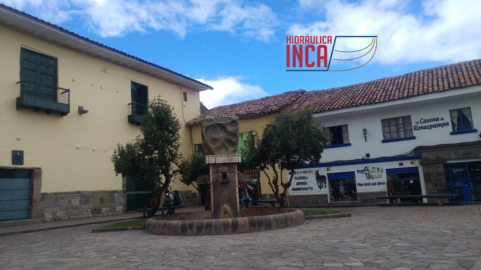 Plazuela que muestra la replica de una huella de un dinosaurio encontrado en territorio cusqueño