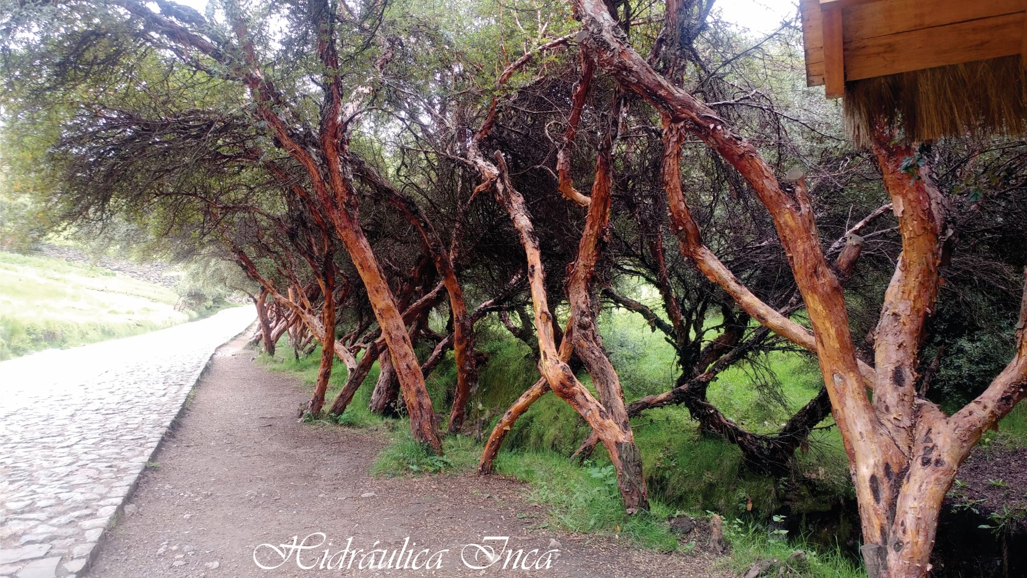 Al llegar a Tambomachay nos recibe una plantación de queñual, noble árbol, de esta parte de país quien con su suave corteza ayuda en los ascensos, cuando se requiere, tal como lo experimenté cuando viajábamos rumbo a la parte alta de Sacsayhuaman; aparte de propiedades curativas que se le atribuye por ejemplo como tratamiento en la diabetes (se usa su corteza).