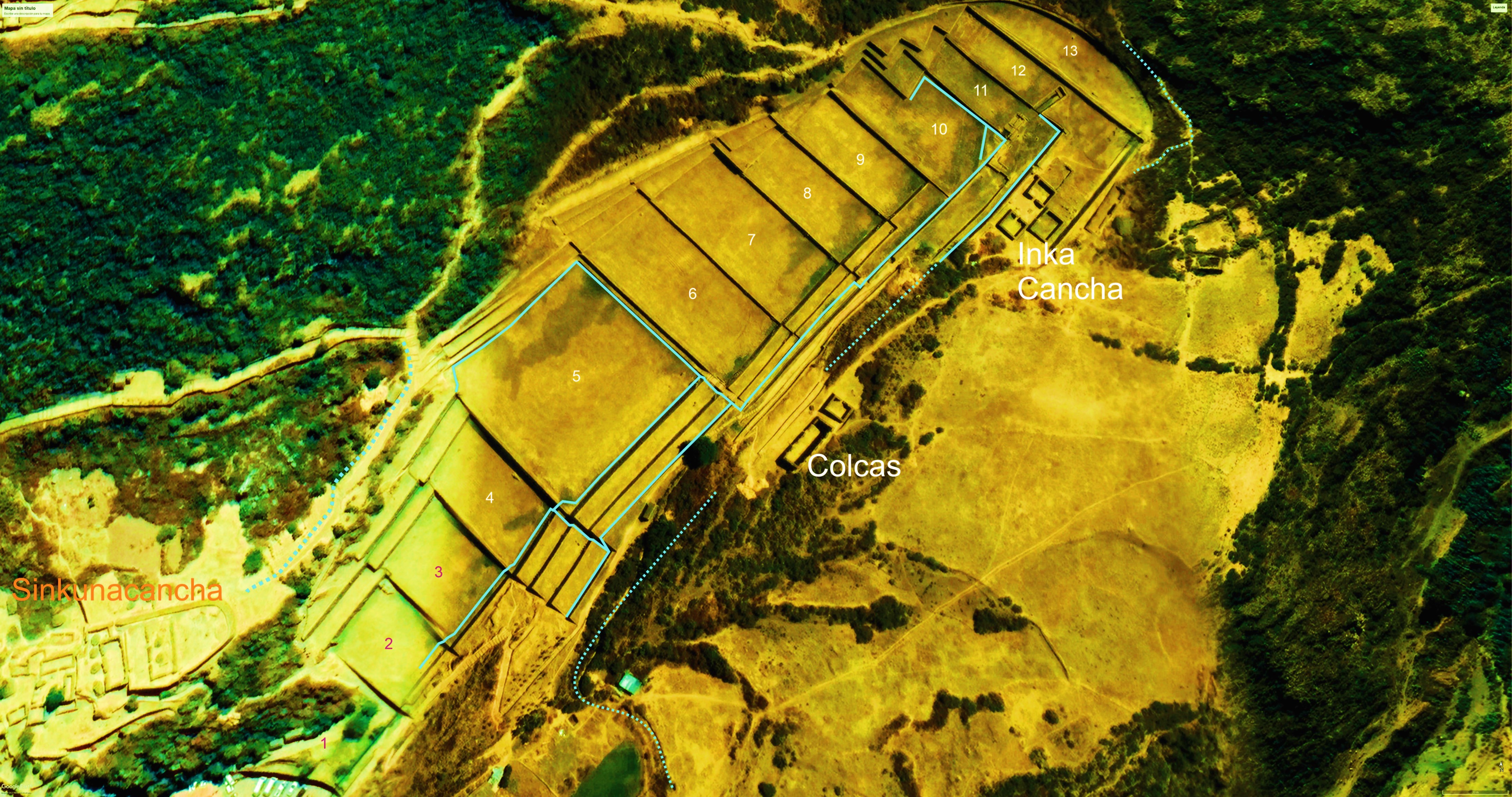 Figura 7: Google Earth 2023, adaptado de Kenneth Wright (2006), Tipón Obra maestra de la ingeniería hidráuica del imperio de los Incas