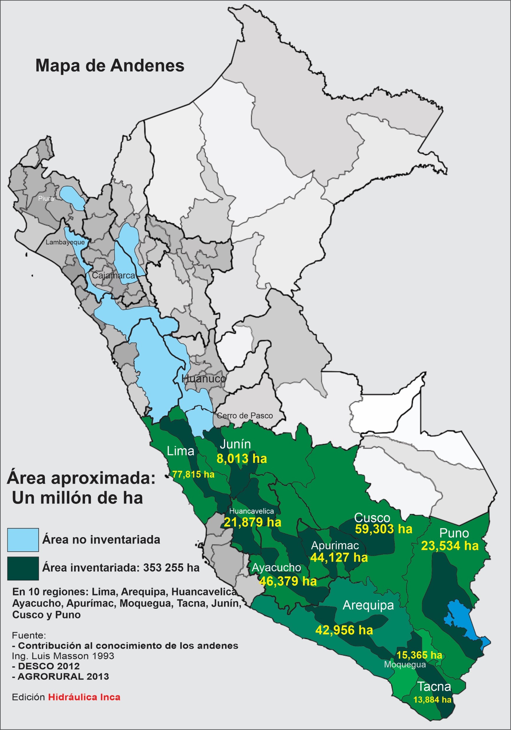 El valor social lo podemos apreciar en la cantidad de andenes que construyeron a lo largo y ancho del Tahuantinsuyo, mudos testigos del desarrollo que logramos, seguridad alimentaria basado en la seguridad hídrica. Según el inventario realizado por AgroRural son cerca de medio millón de hectáreas que esperan un mejor trato, y no la situación de abandono en la que se encuentran. Nos quedamos con el dato del Ing. Luis Masson, quien señala que son un millón de hectáreas, que esperamos un día volver a poner en producción de los supera alimentos que nutrieron los cerebros de las personas que hicieron grande el Tahuantinsuyo.