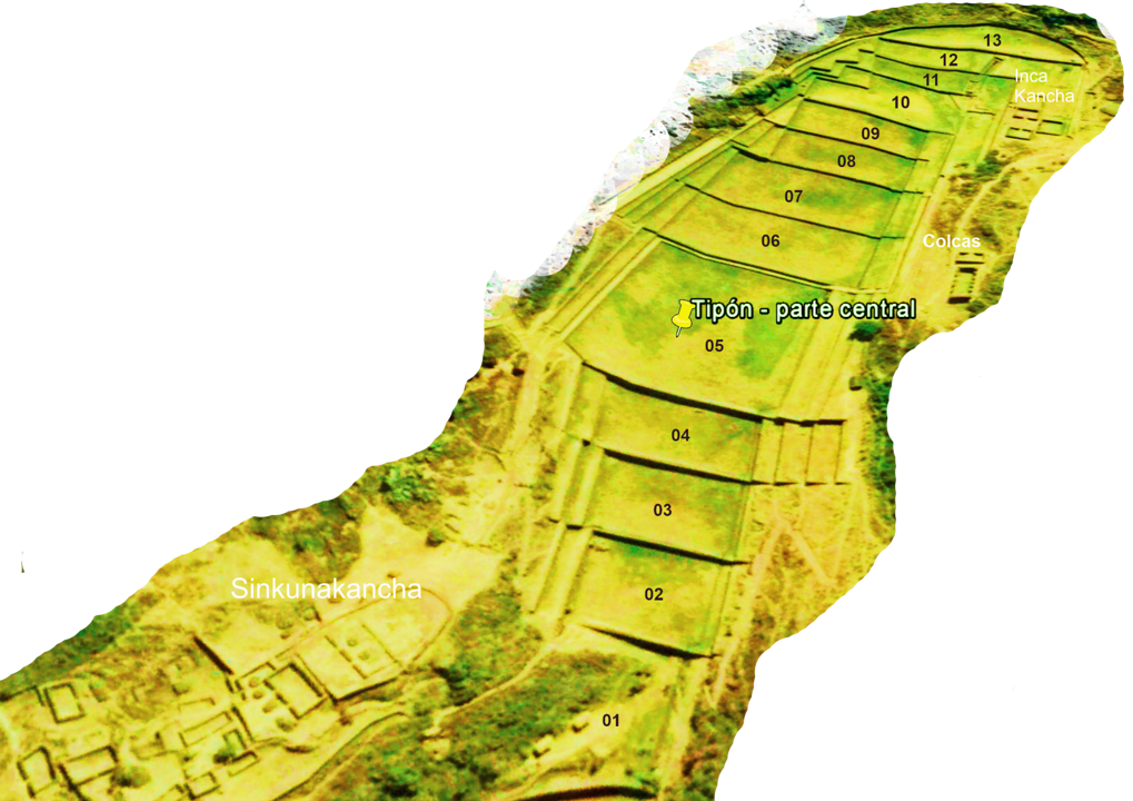 Lo más conocido de Tipón son las 13 terrazas donde se puede ubicar tres lugares importantes:
