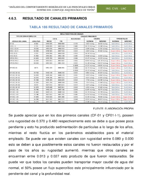 Indica además, que posee un total de 34 tramos de canales repartidos en toda la zona principal del complejo, con el objetivo de no dañar estructuralmente a los andenes así como para transportar el agua para todo el complejo.