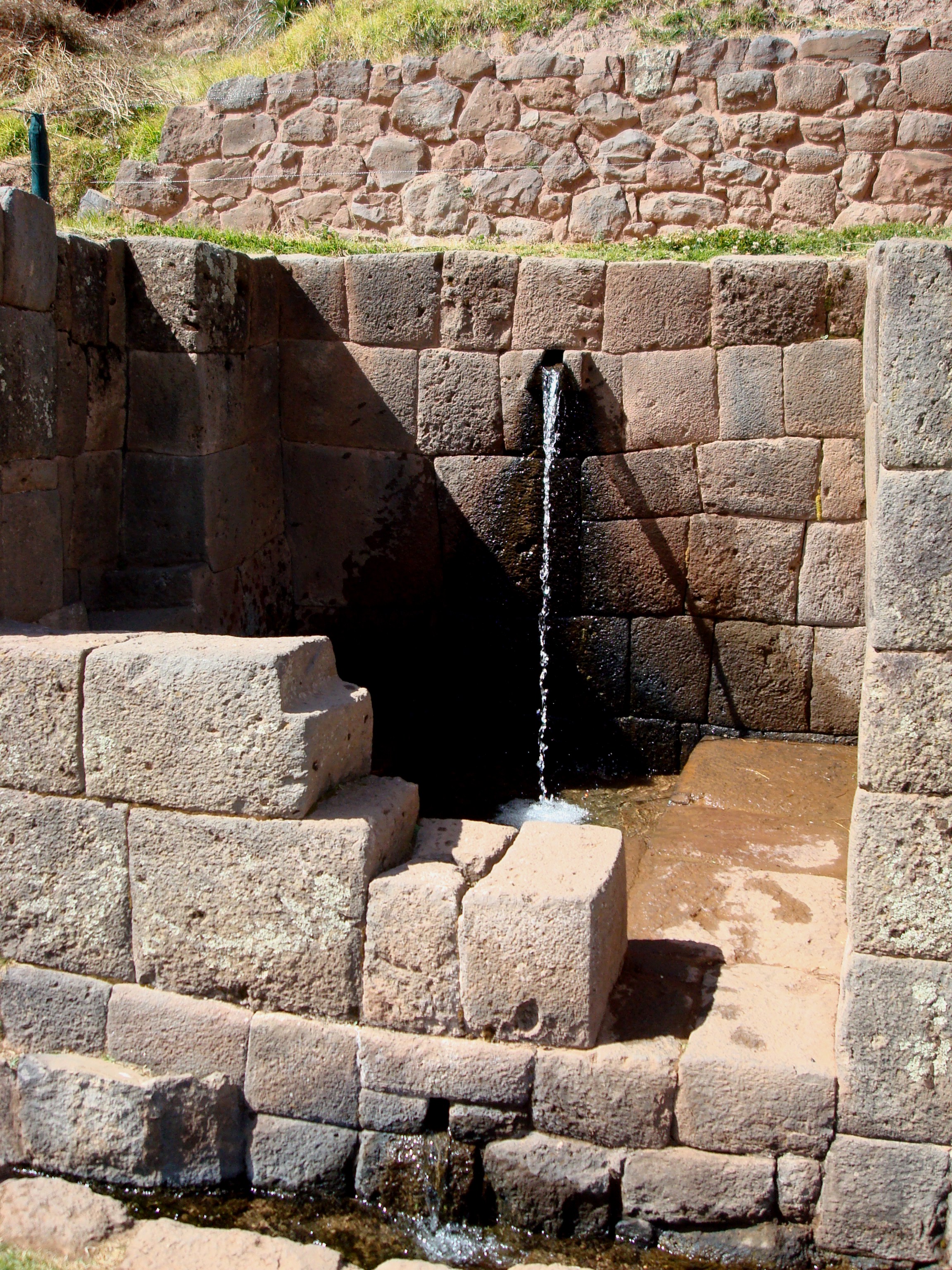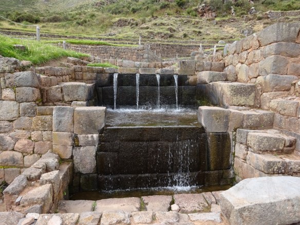 Tuve la buena fortuna de visitar el sitio a primera hora de la mañana cuando muy poca gente estaba allí. El sonido de fondo tranquilo y silencioso de agua burbujeante y sus salpicaduras era muy relajante. La belleza visual de las gotas de agua y las fuentes que aún funcionan después de siglos de uso fue deslumbrante. La vista panorámica del valle a continuación se agregó a la experiencia. Pude entender por qué los incas lo consideraban un terreno sagrado.