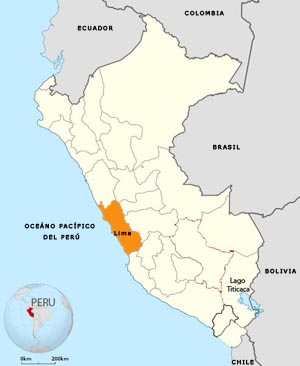 Lima (del quechua Limaq) es la ciudad capital de la República del Perú. Se encuentra situada en la costa central del país, a orillas del océano Pacífico, conformando una extensa y populosa área urbana conocida como Lima metropolitana, flanqueada por el desierto costero y extendida sobre los valles de los ríos Chillón,Rímac y Lurín. En 2007, Lima metropolitana contaba con más de 8,5 millones habitantes, el 30 % de la población peruana, cifras que la convierten en la ciudad más poblada del país.